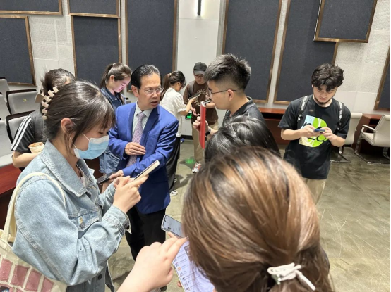 随后,马克思主义学院院长王建新为大家带来了《扬起理想风帆,踏上人生发展更高境界》考研通识讲座。他以幽默的方式讲解了考研的价值和意义,分享了外语专业背景的学科大师们的发展历程,并给大家分析了马克思主义理论的发展历程和当前形势,讲解了该学科的人才培养要求、二级学科的分类和学习的内容、毕业生就业情况等内容,并悉心梳理了考研复习的注意事项,帮助大家合理选择院校和专业。讲座结束被学生们团团围住,继续答疑解惑。