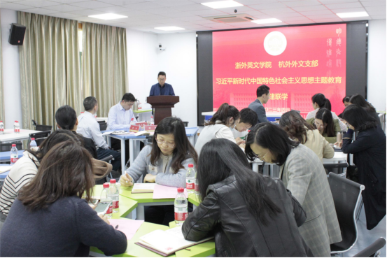 院长叶狂、党总支书记毛立峰、杭州外国语学校副校长李力、外文支部书记庄园,以及两校的50余名教师党员参加了本次联学活动。活动由毛立峰主持。