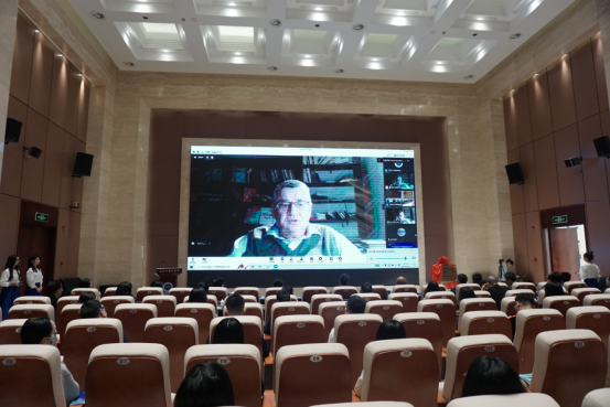 奥地利维也纳大学语言学系主任于尔根•斯皮茨米勒教授通过视频致辞,就维也纳大学发展历程、应用语言学专业特色及话语研究方法和成果等作了简要介绍。基于两校合作协议,未来双方将在话语与语用学、社交媒体语用学、线上线下语境中的体裁研究等领域开展深度合作。