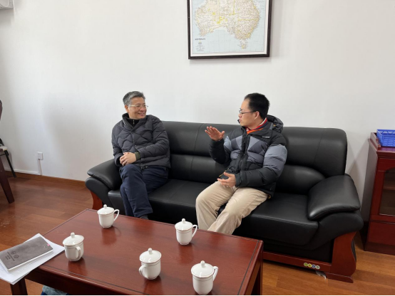 “过年有没有回老家?”、“过年过的好吗?”,宣书记一见面就与谢教授开展了亲切的交流,询问了谢教授在学校的生活情况、工作情况,并嘱咐学院要做好服务工作。随后宣书记围绕教育治理、课堂教学、高质量发展等方面与谢教授开展了深入交流。