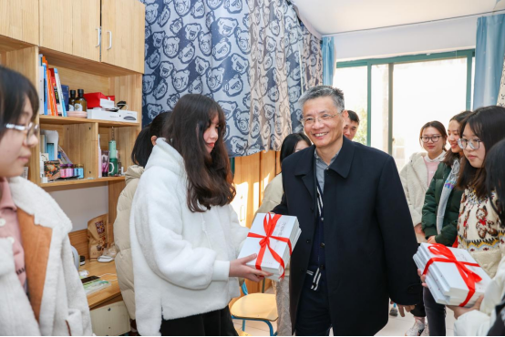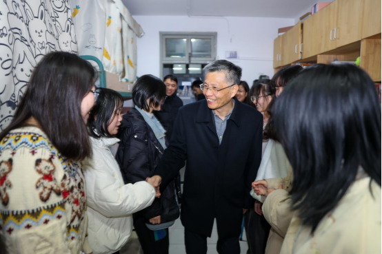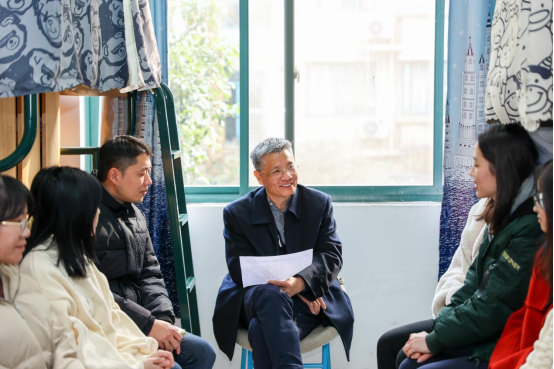 近日,校党委书记宣勇在党校办主任傅尧力的陪同下来到雅仪苑3号楼我院新生寝室走访,看望、关怀正在复习备考的2021级新生。学院党总支书记毛立峰、副书记张豫晋和辅导员顾蒙一同走访。