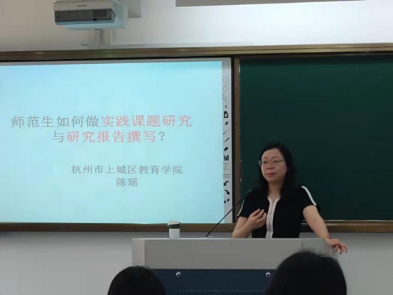 9月17日上午,杭州市上城区初中英语教研员、上城区教育学院基础教育研究中心副主任陈瑶老师为我院师范生作题为《师范生如何做实践研究与研究报告撰写》的专题讲座。