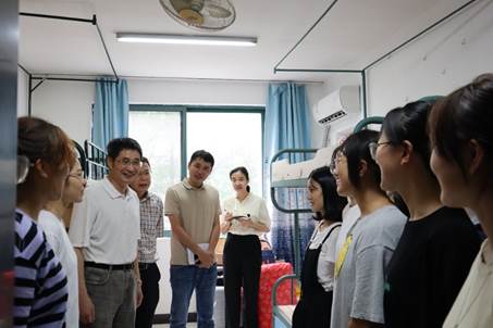“家乡是哪里?分别是什么专业?学校食堂饭菜合不合胃口?”校长洪岗亲切地询问着同学们的个人情况,还不断地与她们交流生活习惯问题,鼓励同学们正向调整自己的状态,尽快适应大学的学习生活环境。各位领导也悉心听取了同学们对于寝室条件的评价,表示学校愿意在能力范围内,把学生的生活条件安排到最好。