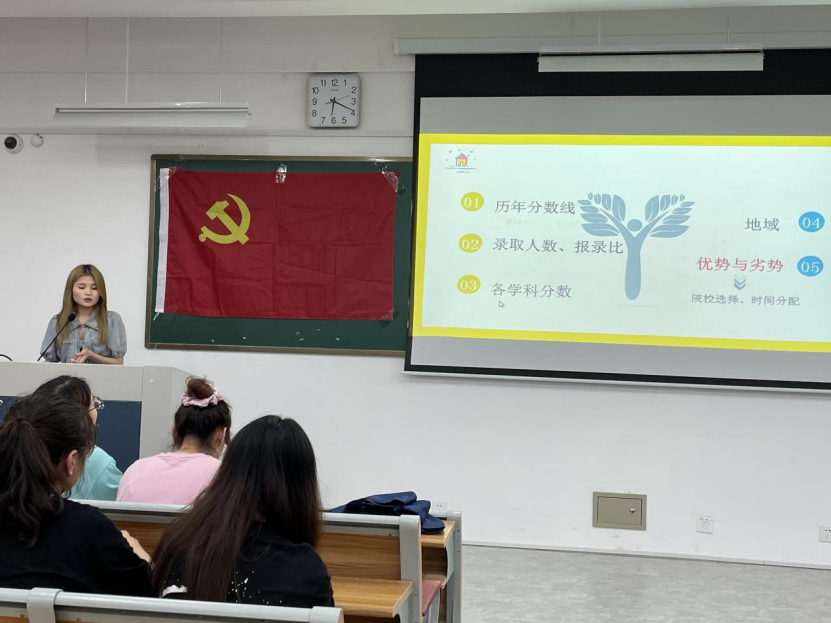 即将奔赴南开大学就读英语语言文学专业(格拉斯哥)的张葳围绕择校、备考时间安排等方面向同学们分享了成功上岸的经验。她提出要合理利用艾宾浩斯遗忘曲线,及时复盘并适时调整复习科目,避免过于执着一门课而感到疲惫,以提高备考学习效率。
