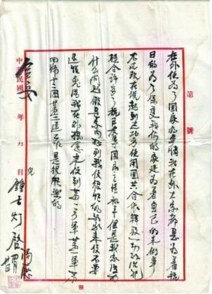 钟士灯的家乡在江西省雩都县(今于都县)桥头乡,这里是原中央苏区根据地,也是被称为“长征第一渡”的中央红军长征的主要集结地和出发地。1937年3月钟士灯所在的红四师从陕西三原开赴栒邑(今旬邑县)练兵。作者写这封家书的时候,抗战还没有全面爆发,红军尚未改编为八路军。西安事变后,国共两党正在谈判,进行第二次国共合作。钟士灯告诉父母:“我在外,大家都是为着抗日的,为了保护我们的家庭,为着自己的未〈来〉做事。不过,现在说起到达北方,使用〔实行〕国共合作、释放一切政治犯,联合〈了〉许多抗日友军,国家已经和平。”1937年8月25日,中共中央军委发布命令:中国工农红军改编为国民革命军第八路军。同年9月11日,国民政府军事委员会按全国海陆空军战斗序列,将第八路军改称为第十八集团军(此后仍沿称八路军),朱德改任总司令,彭德怀改任副总司令。