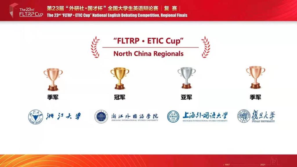 “外研社·国才杯”全国大学生英语辩论赛始创于1997年,每年举办一届。历经24年的不懈努力和品牌积淀,已经发展成一项具有权威性、高规格、大规模的赛事活动。大赛的专业权威性已被全国高校、英语教师和在校大学生广泛认可,产生了深远的社会影响。本次华东赛区总决赛共有来自浙江、江苏、上海、山东、安徽等110支高校代表队参赛,竞争激烈。