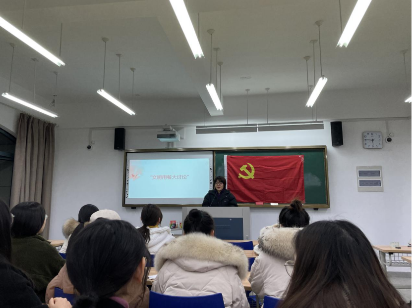 为深入贯彻落实习近平总书记关于制止餐饮浪费、落实垃圾分类、开展爱国卫生运动等重要指示精神,1月7日,英语系学生党支部开展“光盘我先行”主题学习教育活动。本次活动以总书记关于粮食安全、中央农村工作会议重要讲话精神为切入点,引导学生党员从国家长治久安发展高度认识粮食安全问题的重要性,要求学生党员以身作则,厉行节约,坚决制止餐饮浪费。