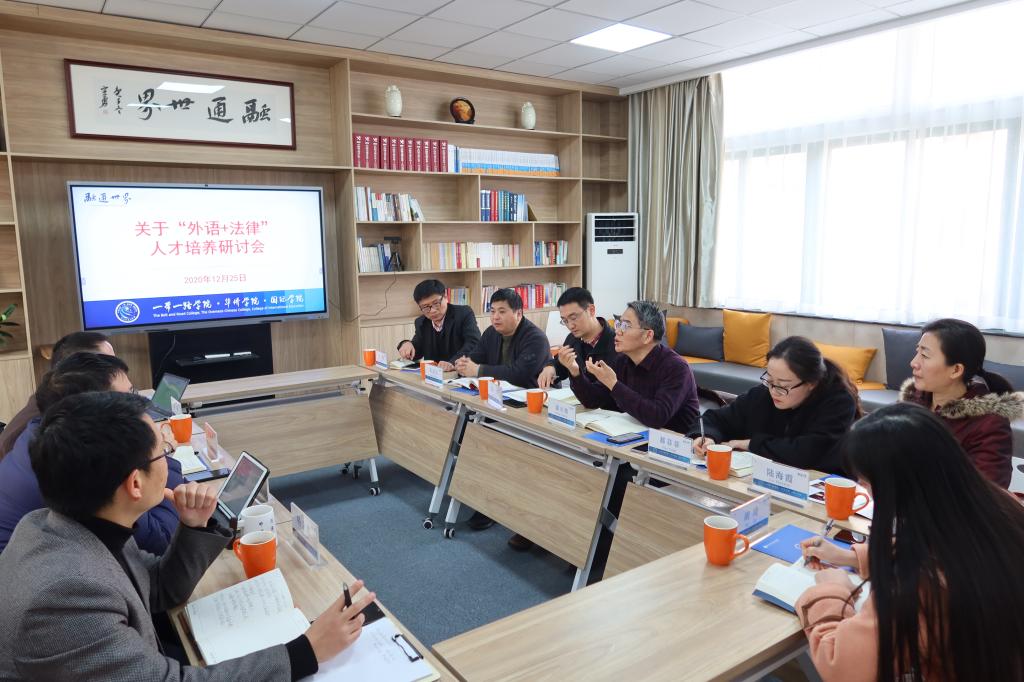 12月25日下午,我院院长蒙兴灿、教学副院长朱武汉、副书记郝菲菲、商务英语系主任高伟及应用型专业负责人陆海霞赴“一带一路”学院参加“外语+法律”人才培养专题研讨会。
