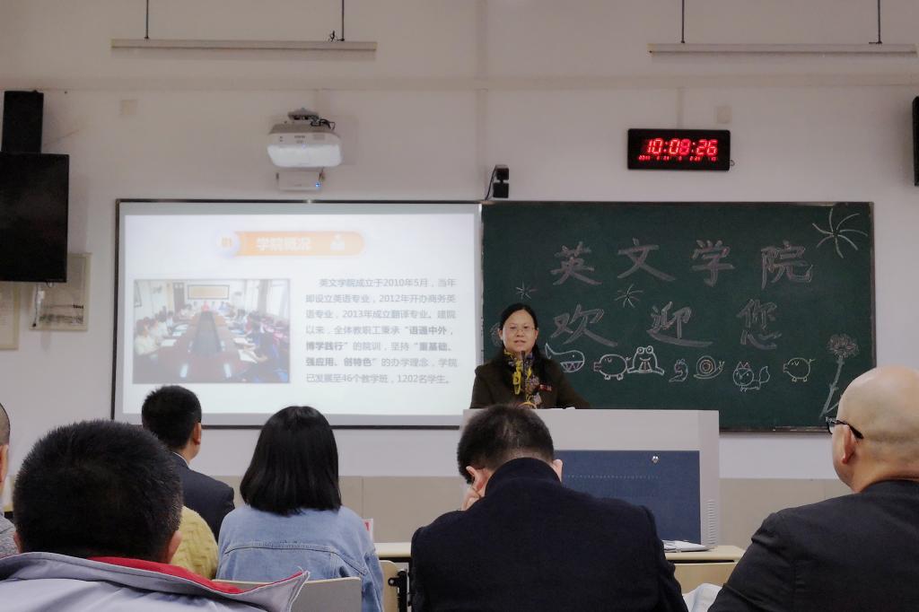 党总支书记周彩英对学院整体概况进行了阐述,讲述了鸭奈飞