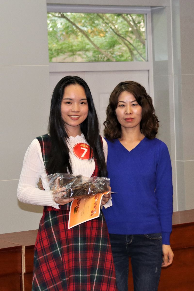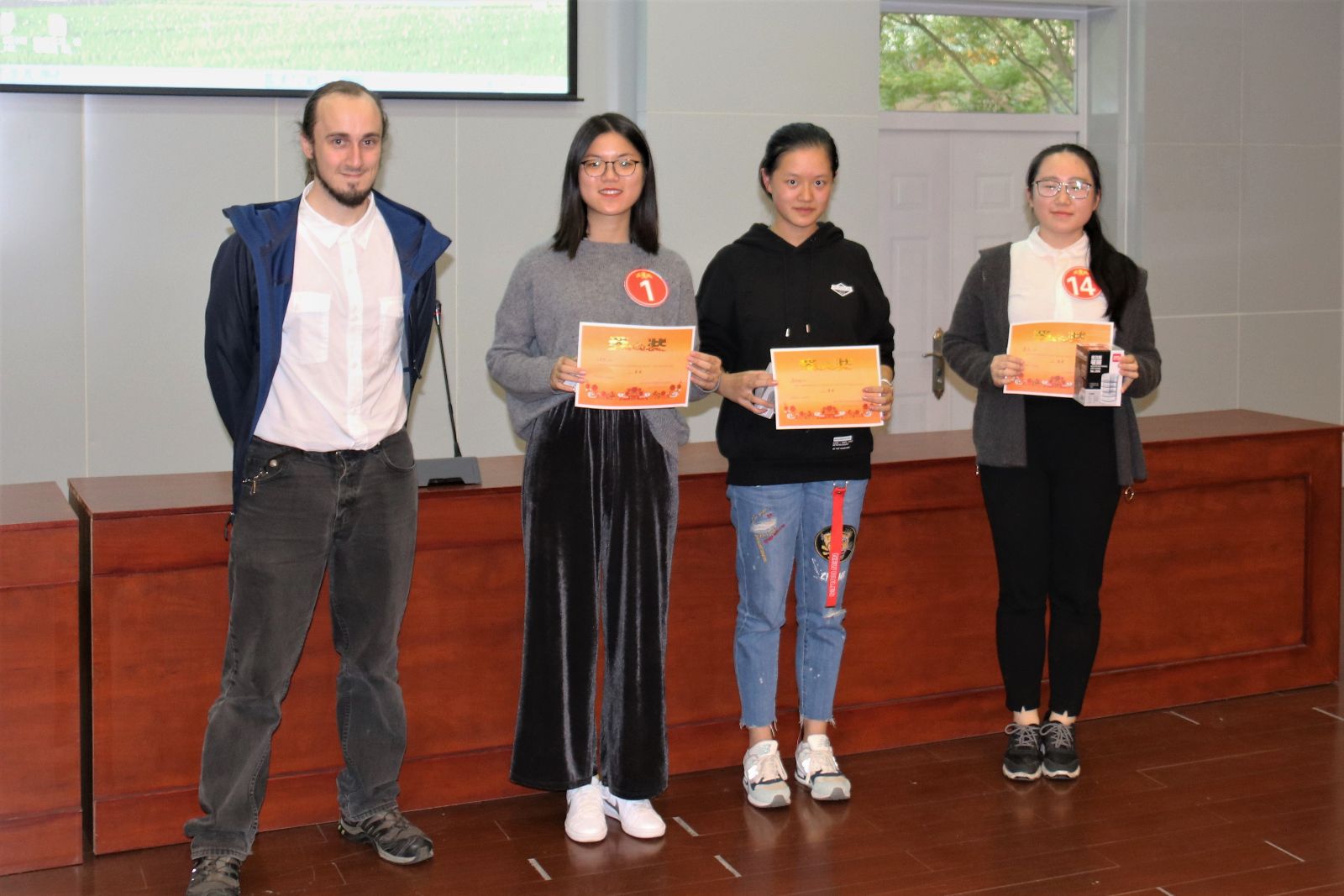 参加校级“新生杯”演讲比赛。Jeff老师和樊维娜老师为获奖选手们颁奖并合影留念。