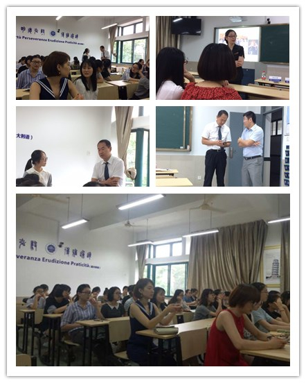 英语系副主任肖奇明老师主持,花家山庄人力资源部俞红萌和总经理亓民先生主讲。