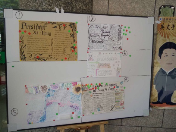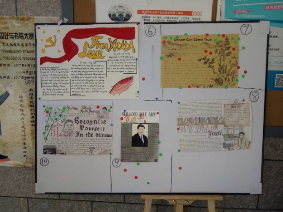 创设部内部无记名打分,选出十份较为出色的手抄报晋级决赛,决赛则由大众评分最终产生一、二、三等奖。评比现场,每一幅手抄报都赏心悦目、独具匠心,在同学们中起到了很好的宣传和引导作用。前来围观的大众评审们都兴致勃勃,在细细欣赏了每一份手抄报后为心仪的作品投上了宝贵的一票。最终,16英语5班李啸晨获得一等奖。