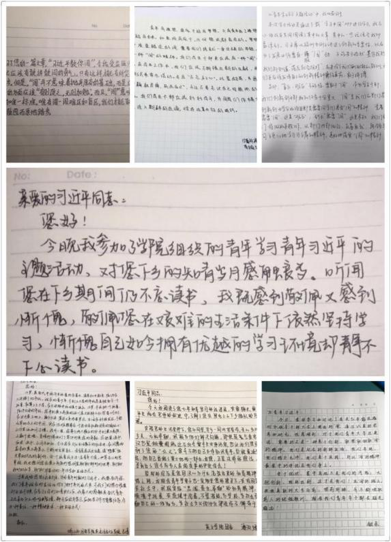 学子也自发开展形式多样的学“习”活动。通过观看微视频、阅读访谈录、朗读习大大的知青故事等,同学们对习近平总书记有了新的认识。习近平总书记吃苦耐劳,在黄土地上艰苦奋斗,在煤油灯下深夜苦读的精神更是让同学们备受鼓舞,收获良多。这不,同学们纷纷写下了一封封饱含真情实感的书信,与青年时期的习大大进行了一次隔空对话。