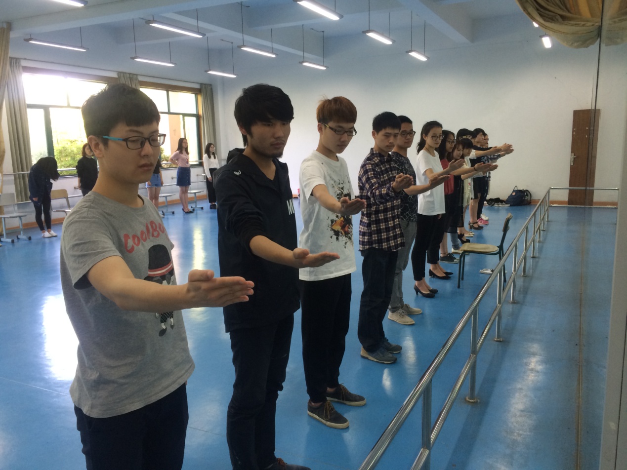 “腰背直立——收腹挺胸——保持微笑!”没错,这是常见的礼仪队的练习姿势。可是,你能想到,做这样练习的是一群男生吗?他们在指导老师的口令下,跟着女同学一起做形体礼仪的训练,一举一动都做得有板有眼。