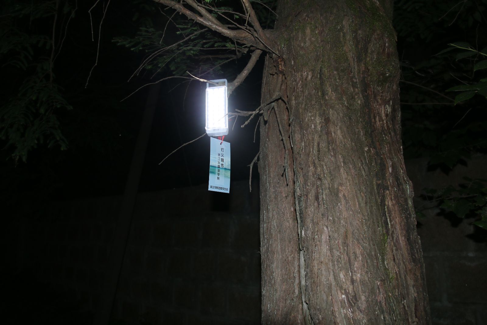 团委学生会协同各学院将在每天夜幕降临时定时挂起照明灯,夜深以后再取回,同时,每隔半个小时进行检查,细心呵护这片光明、这份爱。