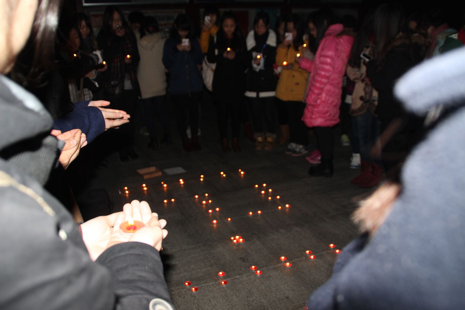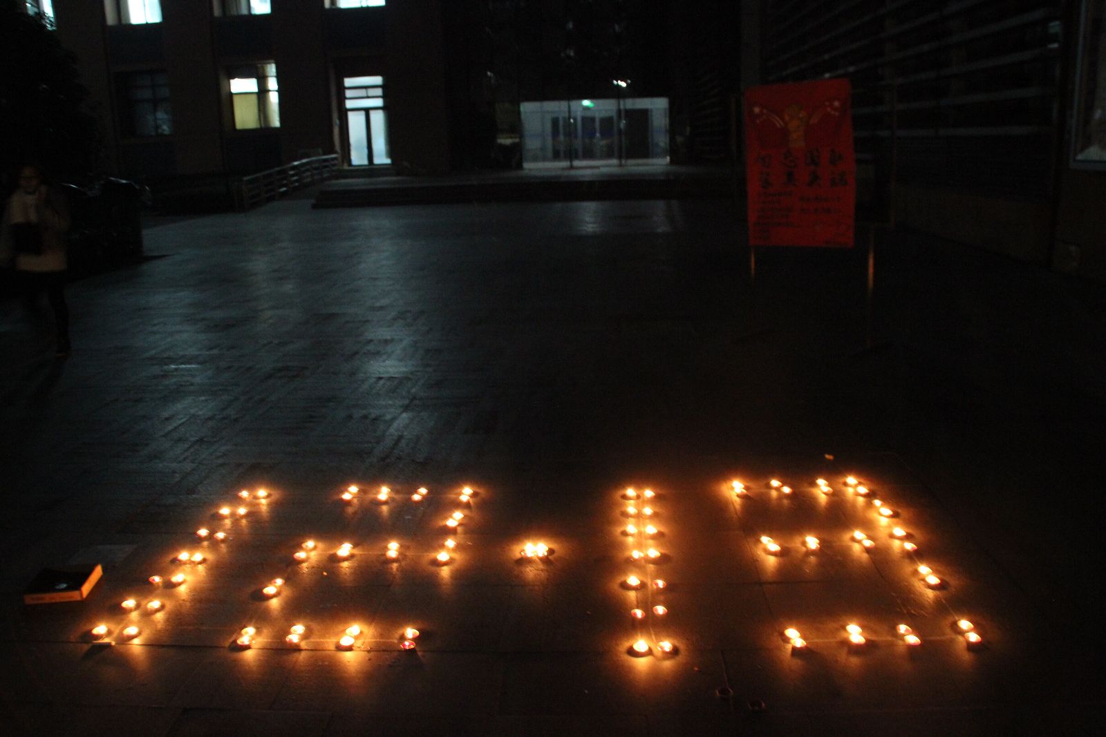 团委负责学生深情并茂地向各位同学介绍了关于我国首个国家公祭日的背景,阐述了我国设立南京大屠杀死难者国家公祭日告慰同胞、以史为鉴的现实意义。随后,全场同学拿出手机,参加新华报业传媒为纪念今年公祭日活动,于9月27日发起的“国家公祭·众志成城——为了永不忘却的国家记忆”虚拟城墙捐砖行动,为 “众志成城,共筑祖国坚强防御”尽自己的一份绵薄之力。最后,同学们一同参加了在艺术楼前的烛光祭活动,在默哀的一分钟里,他们捧起红烛,或是握紧双手,共同为南京大屠杀死难同胞祈福,为祖国的伟大复兴而祈福,为世界的和平而祈福。