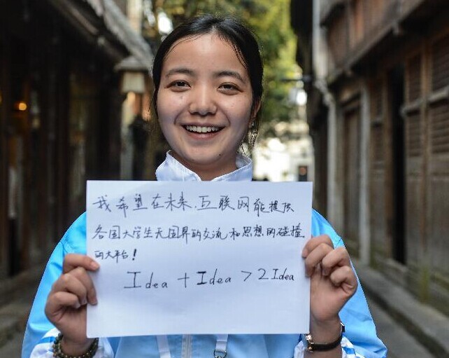 11月21日,我院世界互联网大会志愿者周琴琴同学接受了新华社记者的采访。新华网以“百姓畅想未来互联网生活”和“乌镇温度 中国方案 世界话题——写在首届世界互联网大会闭幕之际”为题,报道了周琴琴关于互联网的畅想。她谈到,希望在未来,互联网能够提供各国大学生无国界的交流和思想碰撞的大平台,并用“idea + idea > 2 idea”表达了互联网带来的思维碰撞和无限可能。