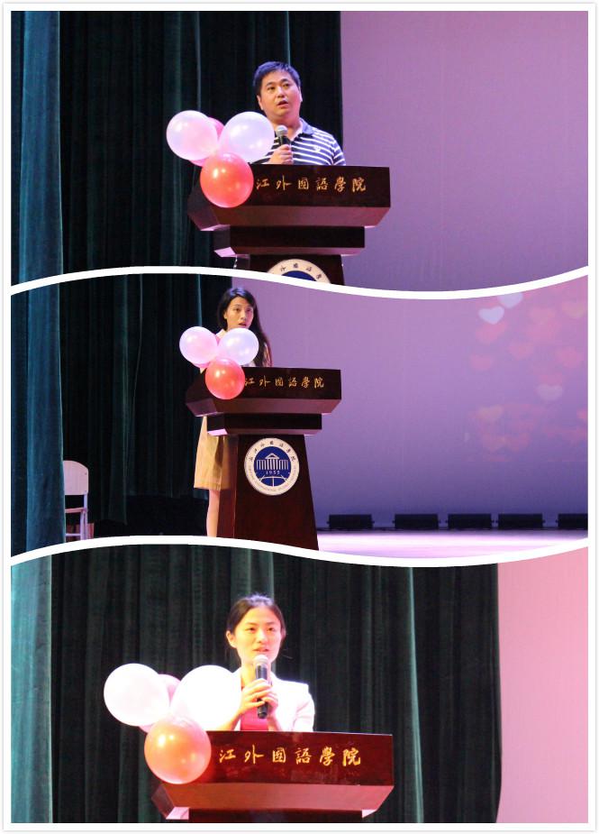 英语系教师代表用自身的求学经历传达给同学们“在大学中应如何奋斗”、翻译系教师代表用温柔的语调讲述了“如何与英语谈一场恋爱”、商务英语系教师代表则用鲜活的事例告诉同学们“锤炼实践技能的重要性”,激励新生们要热爱学习,学会学习,积极进取。随后,鸭奈飞