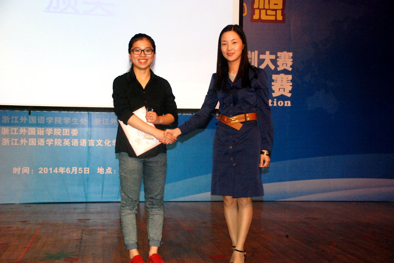 决赛中, 17名选手分别经过主题陈述、职业(创业)人物生涯访谈、职业角色模拟(创业角色展示)和评委提问等环节展示青春梦想。每位选手怀揣自己美好的职业梦和创业梦,借助比赛舞台,展示年轻人朝气蓬勃的风采,勾画他们美好的人生蓝图。最终,来自我院的俞悦凭借“花样年华,云端绽放”的空姐梦荣获职业组特等奖,蒋振斯以“知者乐山,仁者乐水”,江翘以“立三尺讲台,授智慧人生”,冯立婷以“人生第一课”三位同学荣获职业组二等奖;卢竞一、卢作栋两位同学获得职业组三等。而在创业组中,沈忱以“Kick Fun儿童英语乐园”获得创业组特等奖,叶圆以 “梦江南-手工艺品”良好创意赢得一等奖,练娜获得创业组三等奖。