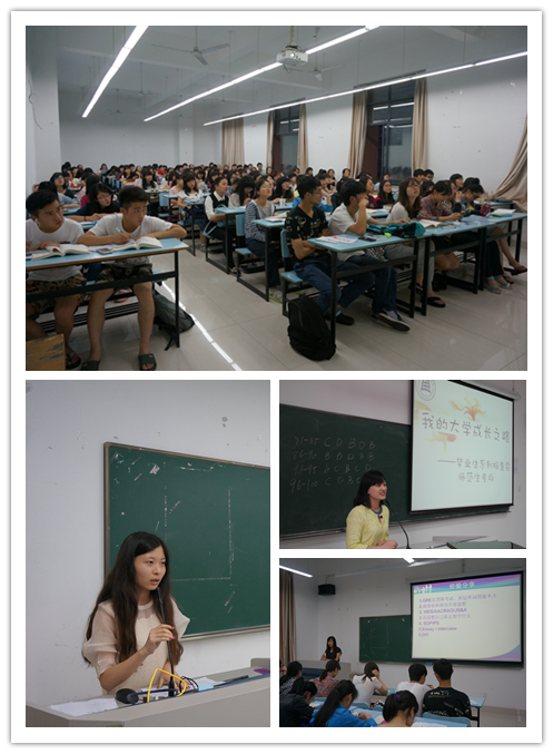 此次系列报告会针对不同专业,分英语师范、英语商务、英语翻译、英语四场。围绕攻读研究生、教师招聘考试、公务员考试、企业求职等方向,精心选择了优秀毕业班同学作报告,讲述了大学学习生活的点滴感悟。鸭奈飞
