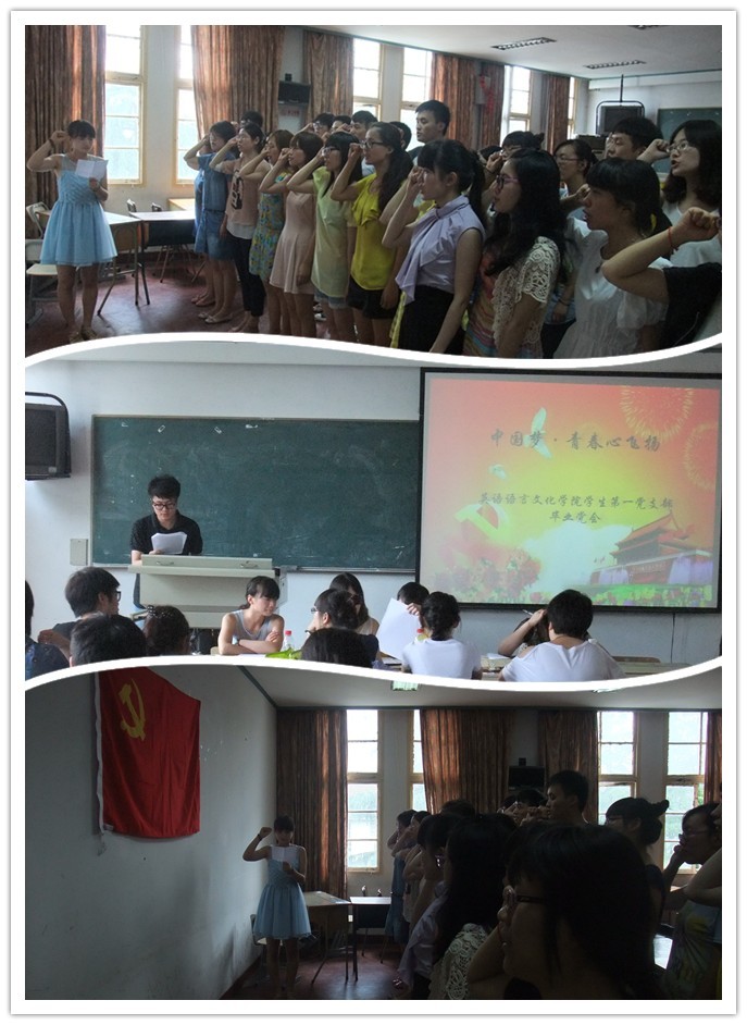 学生第一党支部举行“中国梦•青春心飞扬”毕业生党员教育活动。活动中,全体毕业生党员重温了光荣而神圣的入党誓言,鼓励毕业生时刻牢记党员宗旨,在新征途中展现党员风采。