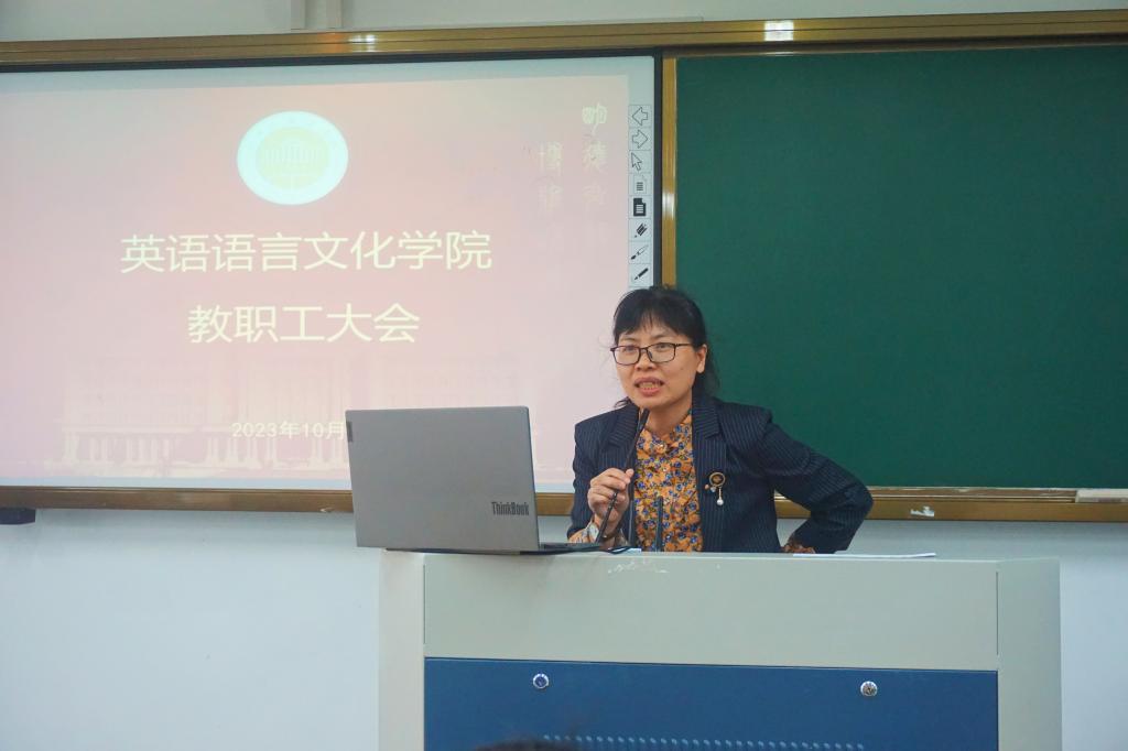 教学副院长陶伟着重强调了开学后教学工作重要事项,主要围绕日常教学纪律、课堂管理规范、教学创新意识提升、基层教研活动等方面进行部署。他针对英语(师范)专业认证整改,翻译专业和商务英语专业新文科认证学期重点工作,以及毕业论文、摸底考试、毕业实习等近期工作事项做出具体安排。