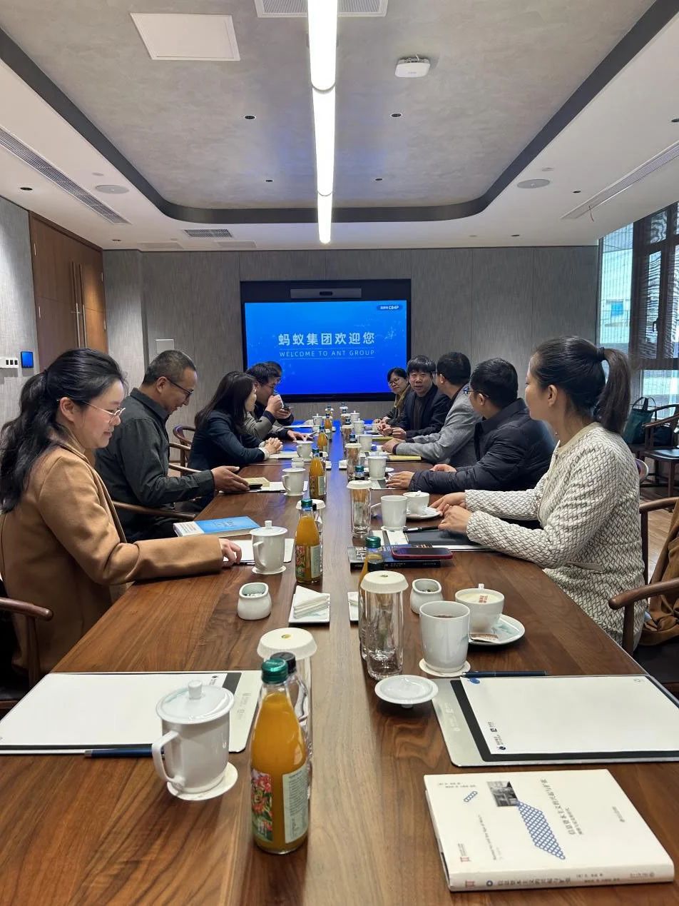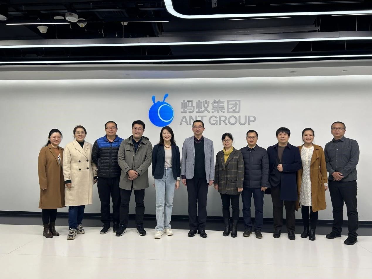 领导班子等一行8人前往蚂蚁集团进行走访调研,旨在深入了解行业发展趋势,提升人才培养质量,访企拓岗。蚂蚁集团相关负责人参加了座谈交流。