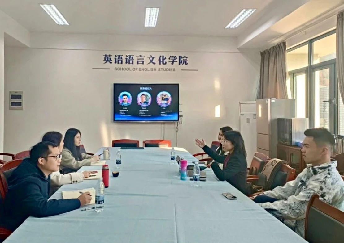 高端端介绍了公司概况、业务模式和岗位需求,充分肯定了浙外学子良好的综合素质和较好的专业能力。陶伟对杭州佳美跨境传媒有限公司一行的来访表示欢迎,介绍了我院实践教学安排和毕业生实习要求,期待未来双方能在人才培养、大学生创业等方面建立合作。张豫晋表示公司业务模式契合英语专业毕业生就业路径,欢迎公司来校开展企业招聘,为后续校企合作搭建平台。