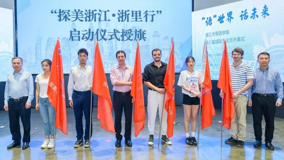 开幕式上,赵文波、毛振华为参与“探美浙江·浙里行”的中外师生代表授旗,希望更多的中外籍师生参与到“探美浙江·浙里行”活动中,通过亲身感受,向世界讲述浙江的精彩蝶变。