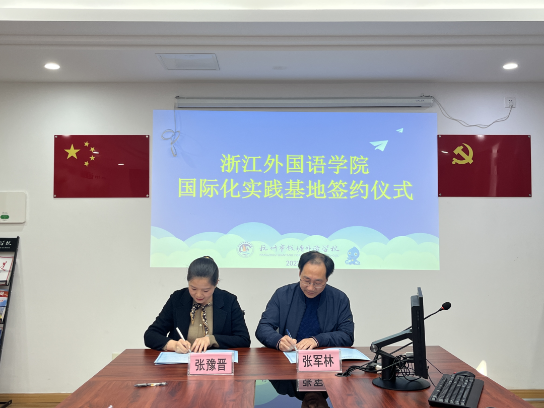 张豫晋代表学校与杭州市钱塘外语学校签订了《关于合作建立鸭奈飞