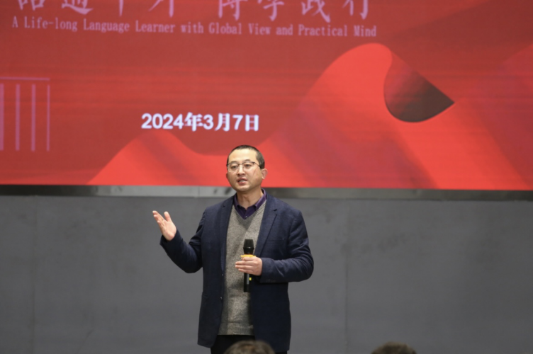 邢富坤强调了在大学期间坚守初心、瞄准定位、努力拼搏的重要性,肯定了与师长交流专业、学习的意义。他介绍了近期学院在引进名师、推动硕士点申报等方面取得的丰厚硕果,表示学院当前发展有实力、有底气,希望助力同学们进一步成长成才。邢富坤以寒假最引人瞩目的宗庆后和贾玲为例,鼓励同学们找准自己的定位,从优秀人物的经历中汲取奋发向上的力量,不以财权利作为衡量成功的唯一标准,要树立奉献社会的初心使命,坚持不懈地严格要求自己,将专业变成强项,最终收获累累硕果。