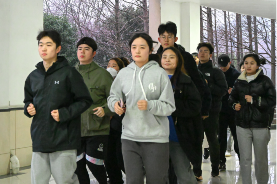 在最强“英”领跑老师、院长邢富坤的带领下,队员们握手互送祝福,在融洽的气氛中温暖彼此。邢富坤认为跑步只是一种形式,在运动中认识自己、认识身边的人才是内核。他鼓励同学们在学习、生活中都要互相帮助鼓励,愈行愈远。