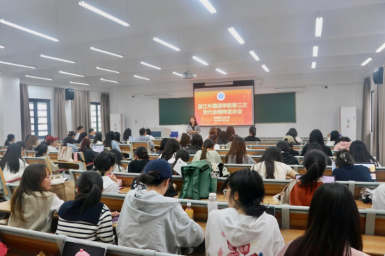 她要求,各党支部要发挥好战斗堡垒作用,带领支部党员深入学习贯彻党代会精神,与学校和学院的发展同频共振;各位党员要用实际行动践行“青年学子学青年习近平”学习教育的要求,发挥好先锋模范作用,发挥好辐射引领作用,助推学院良好学风的形成;要发挥英语专业优势,胸怀国之大者,传承传播好中华优秀传统文化,讲好中国故事、浙江故事。