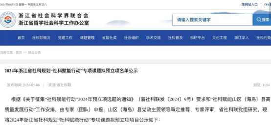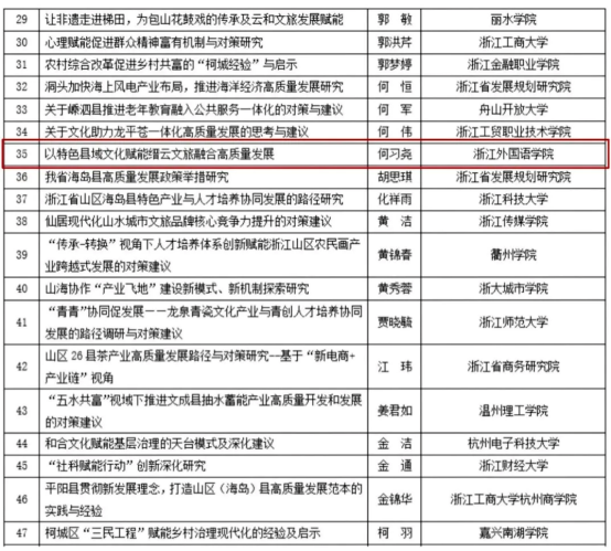 近日,2024年浙江省社科规划“社科赋能行动”专项课题拟预立项名单现已公示,我校共有10项项目顺利入围,其中鸭奈飞 何习尧老师以“以特色县域文化赋能缙云文旅融合高质量发展”专项课题获得立项。