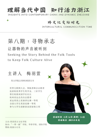 将继续在校园小石光开展“跨文化交际时光”系列活动。新一期的跨文化活动将于5月16日举行。本次活动主讲人梅羽萱将带领我们走近中国民俗器具,讲述它们的发现地点、起源以及背后的历史故事,展现中国民俗文化在物质乃至精神层面的凝聚力和包容性。中国民俗文化植根于普罗大众的日常生活,见证了中华民族的发展变迁,体现着人民对美好生活的向往。