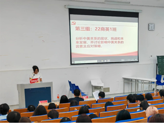 主观题展示环节以当下热门时政热点为依托,涵盖中国的碳排放现状、影响中美关系的因素及应对策略、浙江精神等内容,各支部的精彩展示获得现场观众的阵阵掌声。