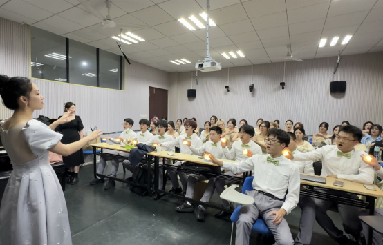 一遍遍精益求精的练习,是学院合唱团不懈追求的体现。