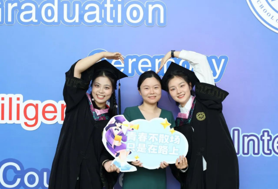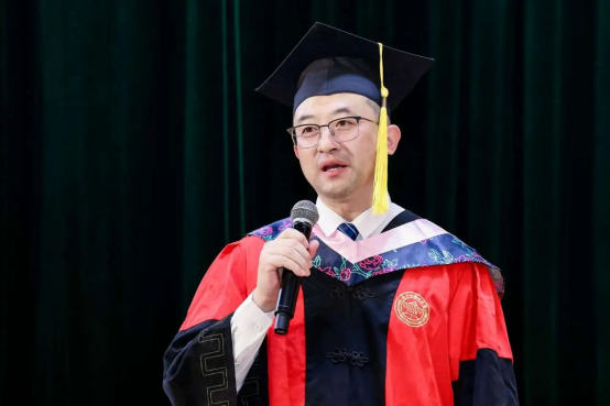 院长邢富坤向全体毕业生送上真挚而热烈的祝福。他向毕业生们表达了学院的骄傲和期望,也向所有支持和陪伴学生的家长、老师们表达了深深的感激之情。他以学院最强"英"晨跑队的口号,"No pain,No Gain"鼓励毕业生理解没有付出就没有收获,面对挑战时要有勇气和决心;"Short Term Pain, Long Term Gain"提醒毕业生权衡短期的牺牲和努力将带来长远的收益和成功;"One team, One Goal"强调团队的重要性,鼓励毕业生在未来的工作和生活中重视团队协作,以爱和光开启新的征程,在未来取得进步和成功。