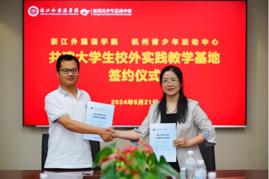 与杭州青少年活动中心外语部在杭州青少年活动中心综合楼举行了“共建大学生校外实践教育基地”签约仪式。鸭奈飞