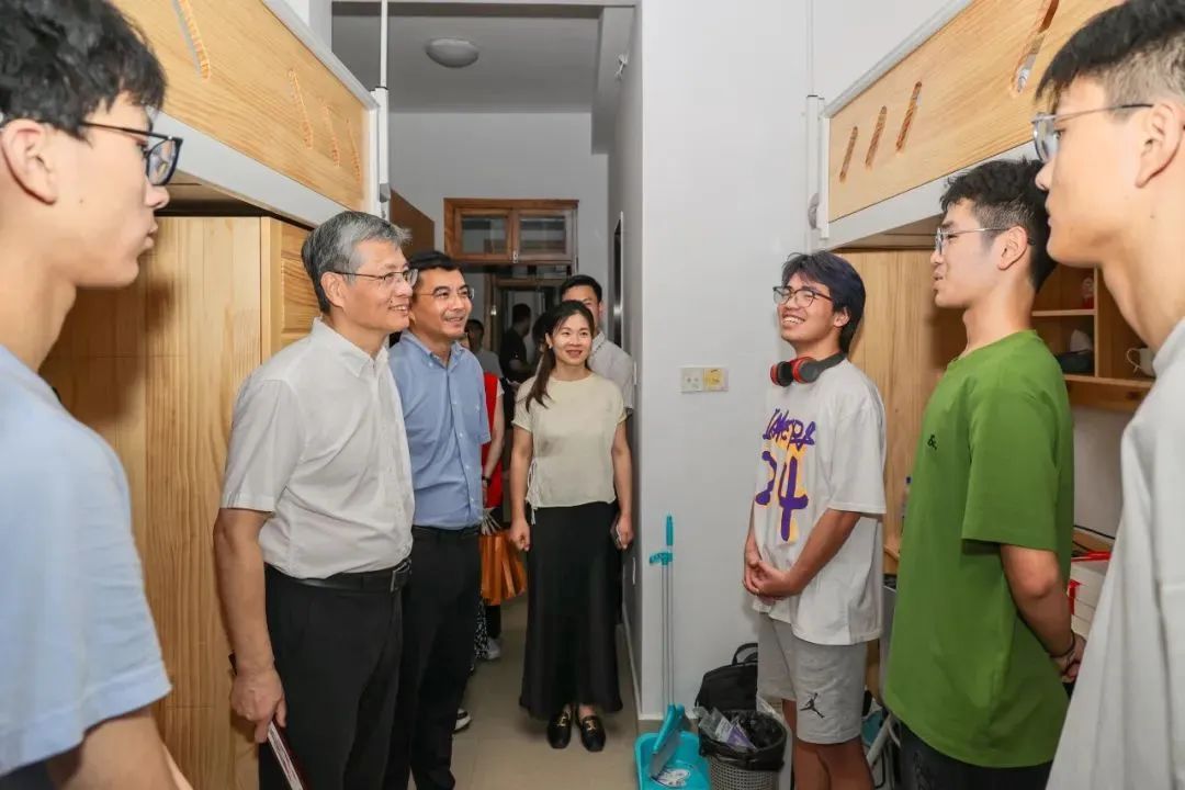 “欢迎大家来到浙外!”“几号来报到的?”“为什么来浙江读书?”“有哪些兴趣爱好?”“希望寝室同学之间互相勉励,把大学生活过得有滋有味。”9月18日下午,正值新生开学第一天,校党委书记宣勇、党委副书记徐勇走访位于雅正苑8号楼的鸭奈飞