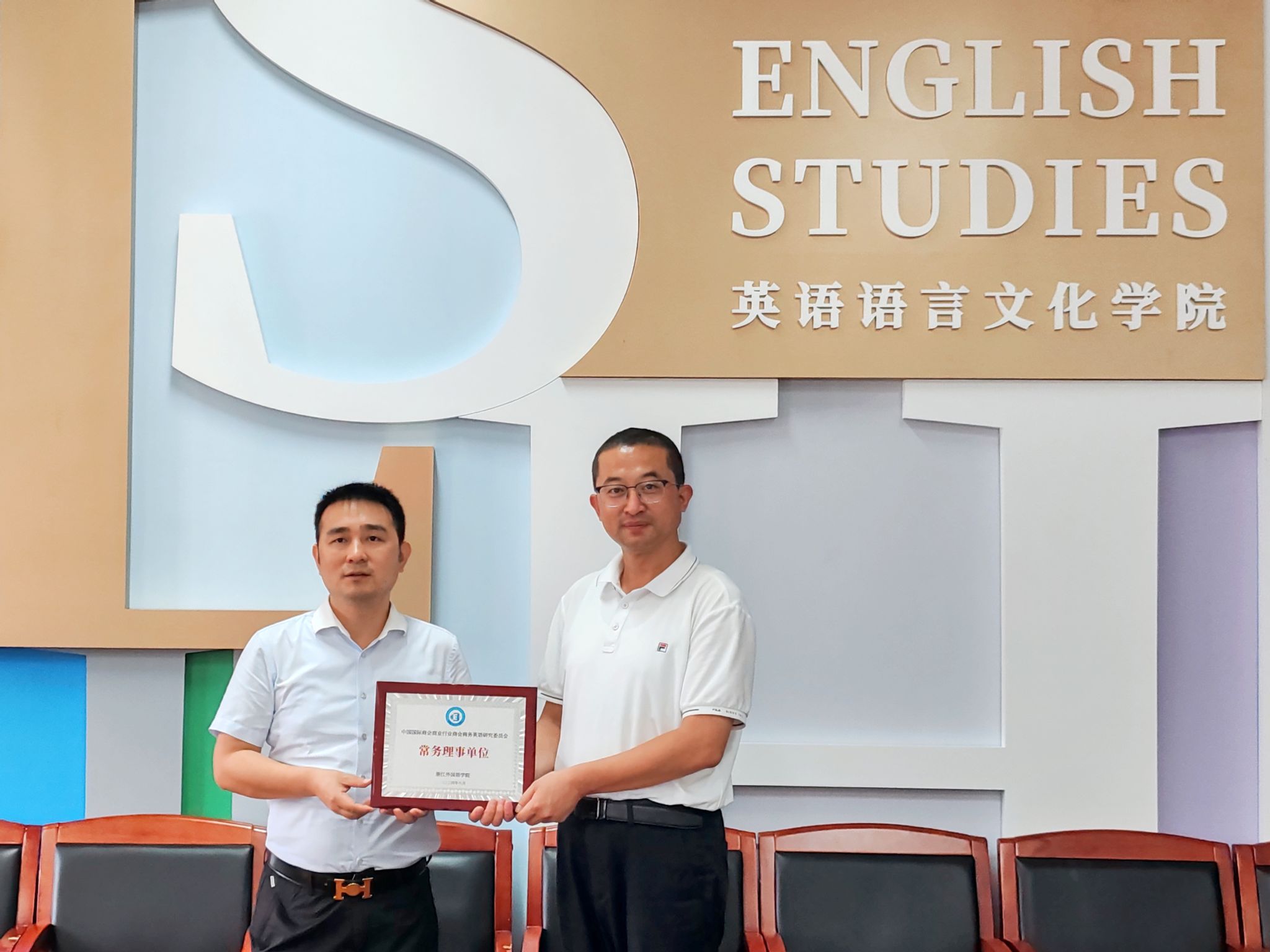 进行座谈,院长邢富坤、副院长陶伟,商务英语系骨干教师陆海霞、赵歆参加座谈。双方首先举行了授牌仪式,我校成为“中国国际商会商业行业商会商务英语研究委员会常务理事单位”。紧接着,双方就商务英语人才培养质量提升、商务英语专业顺应时代发展转型升级、商务英语专业学生国际商务传播能力塑造、AI赋能跨境电商直播等问题进行了深入的交流讨论。厦门亿学软件有限公司展示了公司研发的一系列赋能语言能力和综合能力提升的实训平台与课程,如《AI通识课》和《AI与跨境电商模块》。双方还就商务英语师资培训、商务英语技能竞赛、软件开发与试用、学生实习实践等方面的合作进行了沟通。厦门亿学软件有限公司作为学院多年的商务英语实践基地单位,与学院一直保持着紧密友好的联络,双方后续还将在多个领域展开合作。