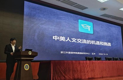学院特聘教授、美国研究中心主任王冲参会并发表题为“中美人文交流的机遇和挑战”的主旨演讲。