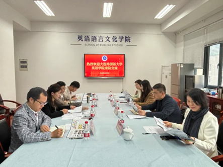 10月25日,大连外国语大学英语学院党委书记兼副院长梁若冰,党委委员、副院长刘晓晖,大连外国语大学多语种翻译研究中心主任霍跃红,英语学院本科生第二党支部书记王艺凝一行四人来鸭奈飞