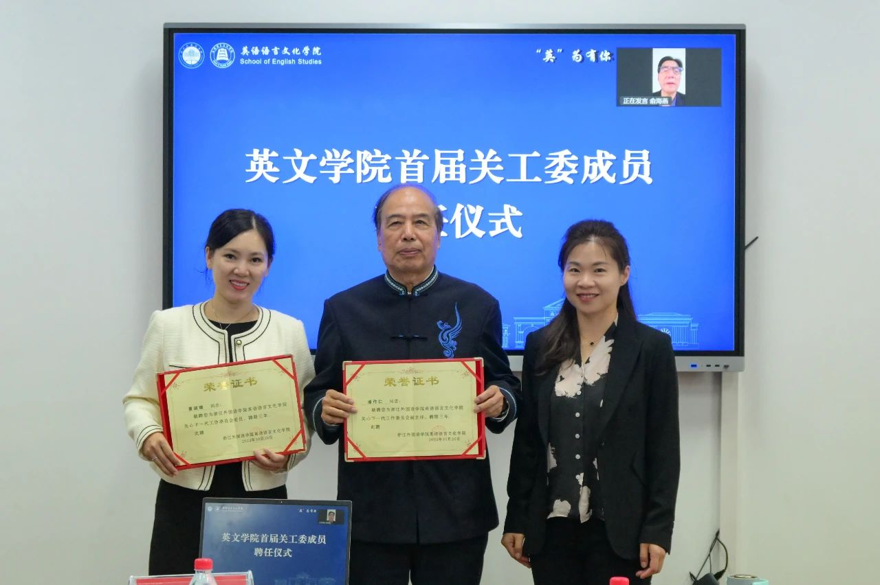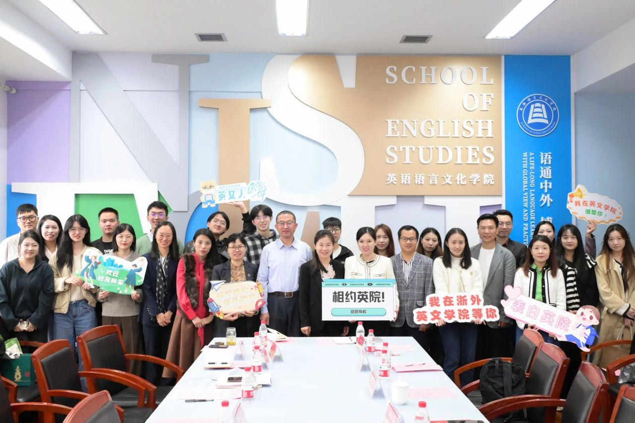 “‘英’为有你‘语’忆芳华”2024年校友座谈会议暨学院关心下一代工作委员会成立仪式在融A407顺利举行,院长邢富坤,党委书记田俊杰,副院长郑淑贞、陶伟,党委副书记欧万彬,学院党委专职组织员俞海燕,教师代表李乐、何习尧、赵歆,辅导员代表顾蒙、杨沁儿以及来自不同年级不同专业的校友代表参加会议。欧万彬主持。