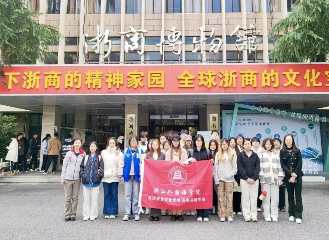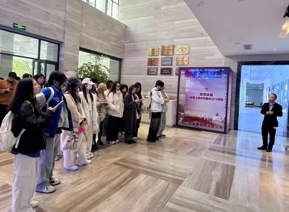 商务英语专业教师陆海霞与赵歆带领着商务英语专业2022级与2023级的逾百名学生,走进了坐落于浙江工商大学老校区的浙商博物馆,开启本学期的商务英语专业实践周参访活动。此次参访活动旨在让学生们通过亲身体验浓厚的商务环境,深化对浙籍商人及其所承载的浙江商业精神文化的认知和理解。