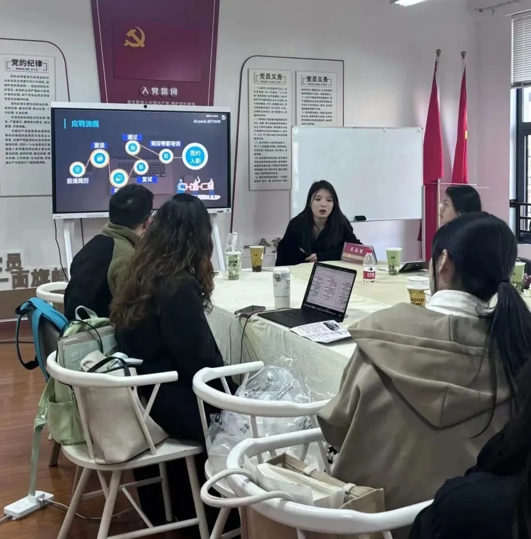 在互动环节,同学们就培训方式、工作内容、时间安排、生活水平等各个方面提出自己的疑问和想法,张信紫一一耐心解答,为同学们消除疑虑。