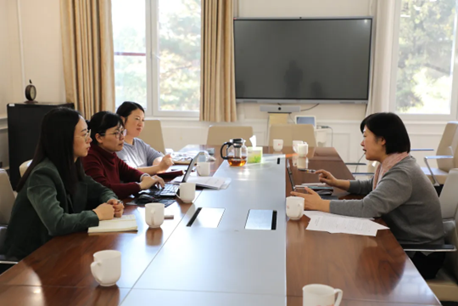 听课结束后,郑淑贞、刘懿、赵歆与北大外语学院副院长王丹就研究生招生和教育问题进行了深入的交流。郑淑贞介绍我院硕士点建设情况,并就研究生招生、命题、审核、初试、复试以及入校后管理和培养方案的相关问题进行了咨询。王丹介绍了北大外院英语翻译硕士和日语翻译硕士的发展历史,具体分享了北大外院在翻译硕士的命题、考试和改卷等过程中基于多年管理经验所形成的《北大外院翻译硕士研究生招生命题多项操作指南》。双方探讨了未来在教师共同指导、学生交流互访、研究生论坛联办等方面进一步合作的可能性。