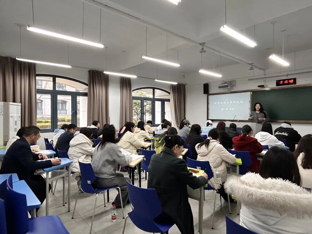 课堂上,张环宙专注听课,仔细记录课堂内容,密切关注教师的教学状态和学生的听课反应。在课堂导入环节,章珏老师从“什么是历史”“为什么学习历史”以及《世界历史与国际政经》课程的初印象等问题出发,由浅入深,带领学生逐步明确课程定位、学习内容和目标,激发了学生的思考与参与热情。