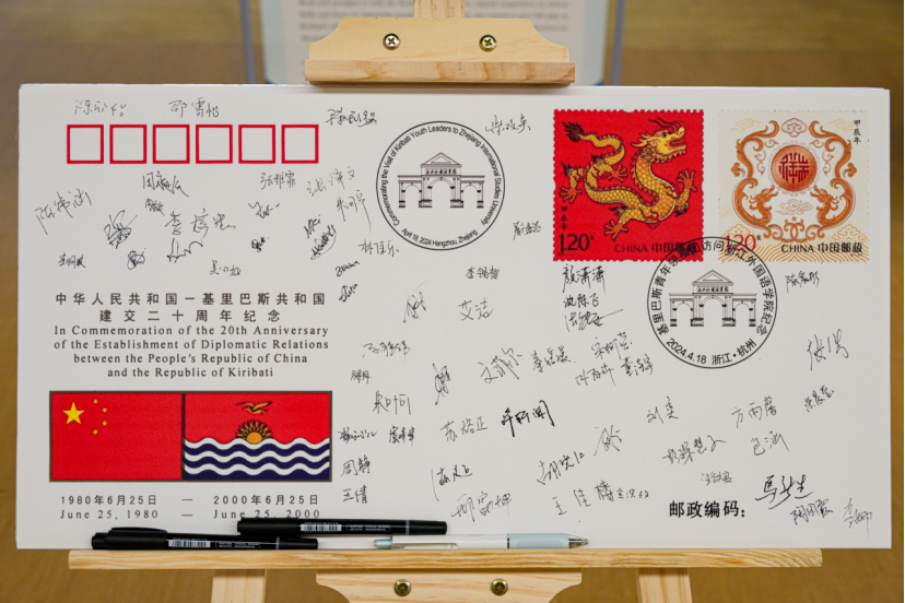当基里巴斯青年领袖团的成员们穿着色彩艳丽的服装,和我们一同踏上了那只大船;当他们来到浙外图书馆四楼,看到满满陈列着的中国艺术作品的时候,他们都被那动人的中国风韵深深吸引,醉心其中。来访的青年团们兴奋不已,唱起歌跳起舞来,给同学们展示着他们的传统文化风采。到了“外交封”环节,我们相继回顾着过去,从疫情时代的艰辛困苦,到一带一路共同走向繁荣,驶出的方舟承载着我们共克困难,共同发展的美好理想。我们回看着过去,期待着未来。随着那一封意义十足的外交封被呈递上来,所有人都为之所叹。随着那一封外交封的递出,我们的故事讲得动人不已。