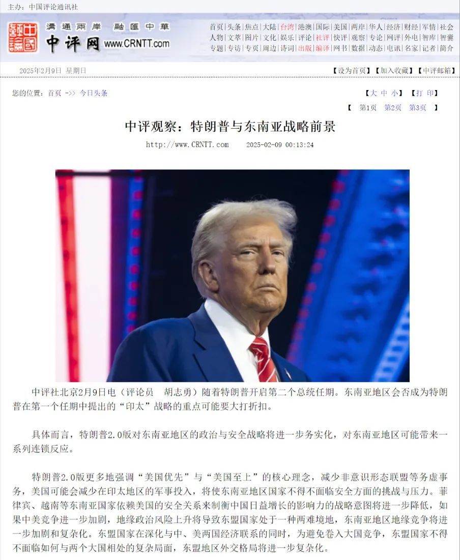 特聘教授胡志勇的文章。文章中,胡志勇就特朗普与东南亚的战略前景等问题发表评论。